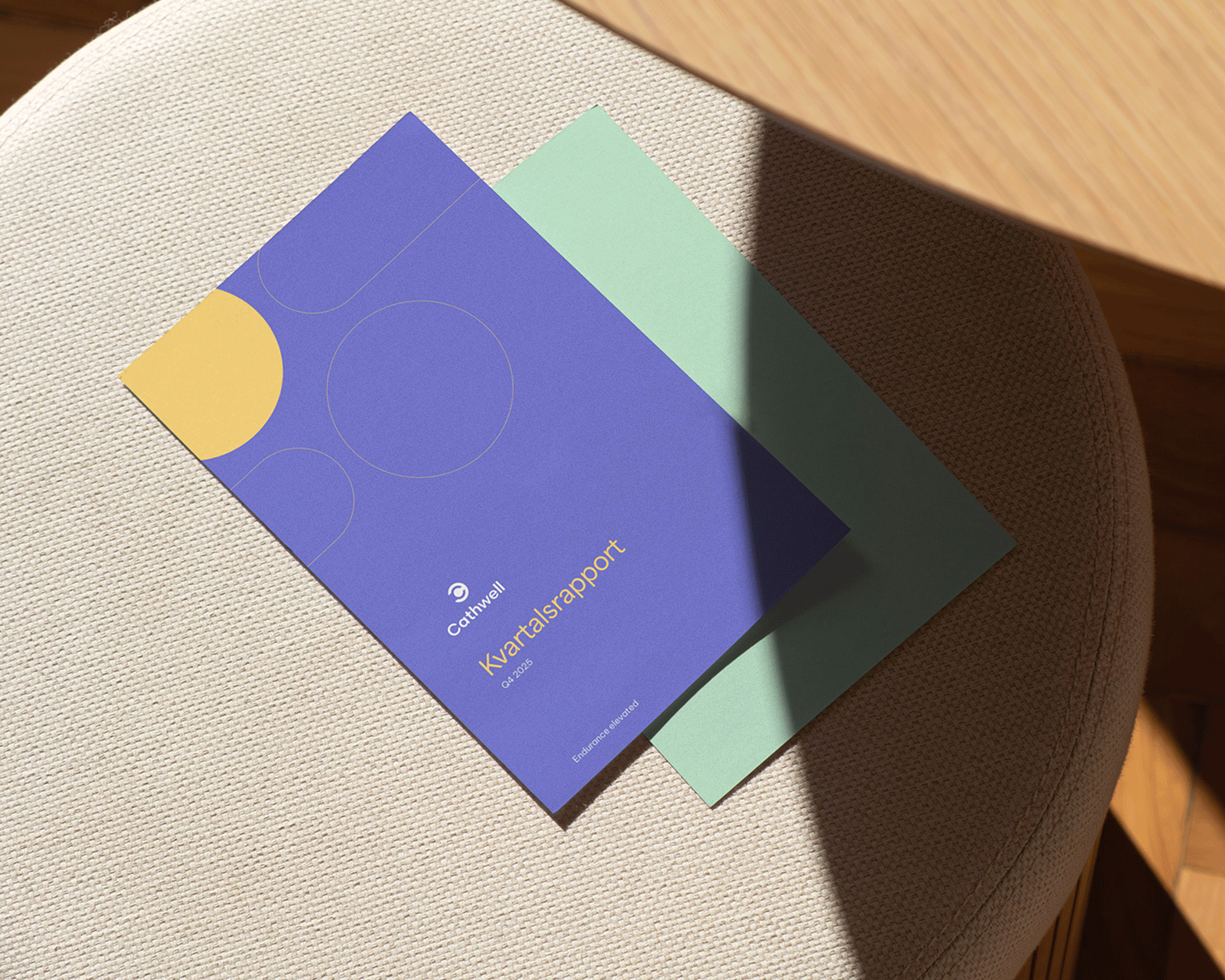 Cathwell sine grafiske elementer er hentet ut fra logosymbolets former – hvor “hode” og “hals” er stiliserte individuelle former i samspill. Uttrykksformene kalles derfor “Hols”. Vi bruker “Hols”-elementet på flater der hvor det egner seg og er plass til ytterligere visuell merkevarebygging.
